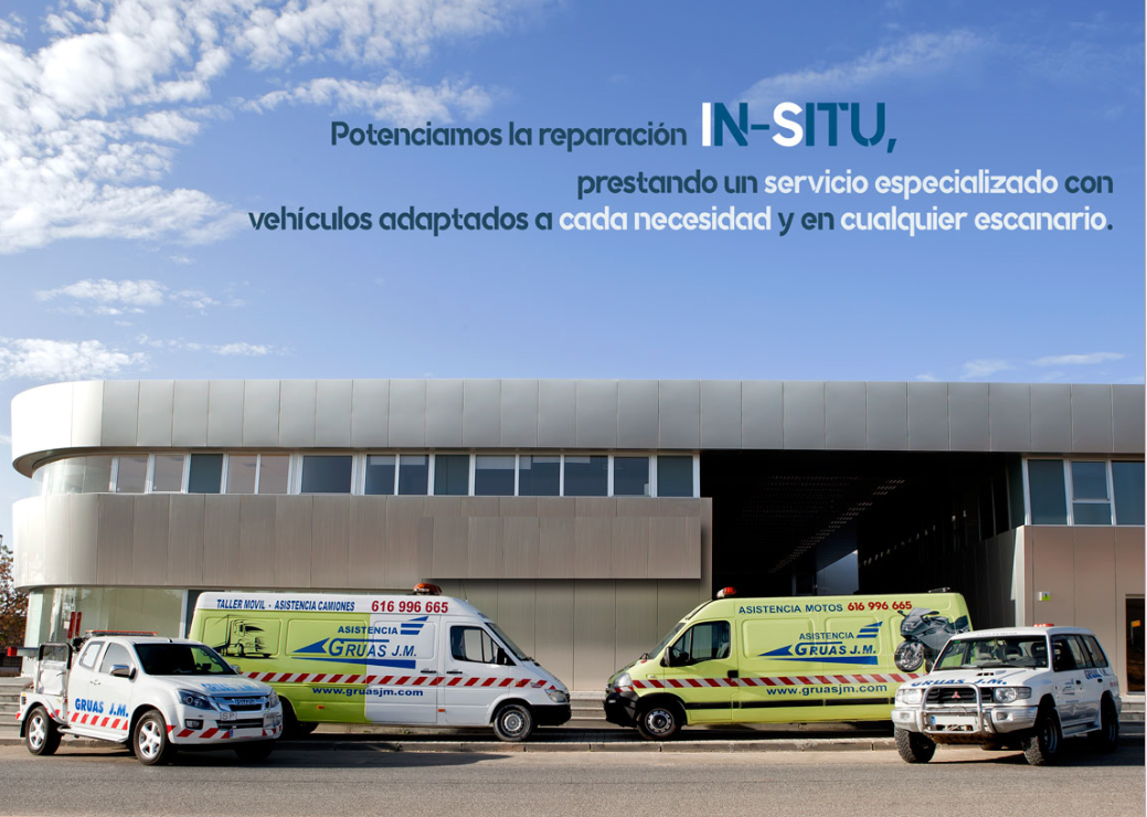 Para llevar a cabo nuestro cometido, disponemos de un amplio abanico de medios y equipos. Nuestros profesionales están familiarizados  con los servicios especiales y rescates complejos, y la empresa pone todo énfasis necesario de brindarles las ultimas innovaciones que ofrece el mercado. Esta conjuncion deja a GRUAS JM como un servicio de asistencia en carretera, rescate y auxilio mas flexible y completo.